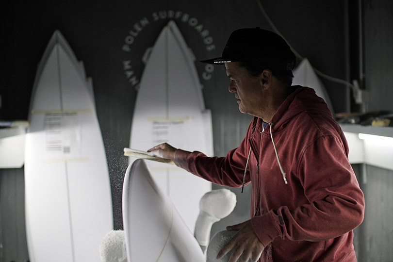 Over the years, Polen has grown together with the European surf scene, earning the trust of some of the world’s top shapers to represent and build their boards in Europe. These include Timmy Patterson, shaper of Olympic and World Champion Ítalo Ferreira; Jon Pyzel, whose boards are ridden by John John Florence; Akila Aipa, known for his fast, flowing Hawaiian designs; Bill Stewart, celebrated for timeless longboards; and Brett Warner, the Australian shaper known for precise, innovative performance boards.