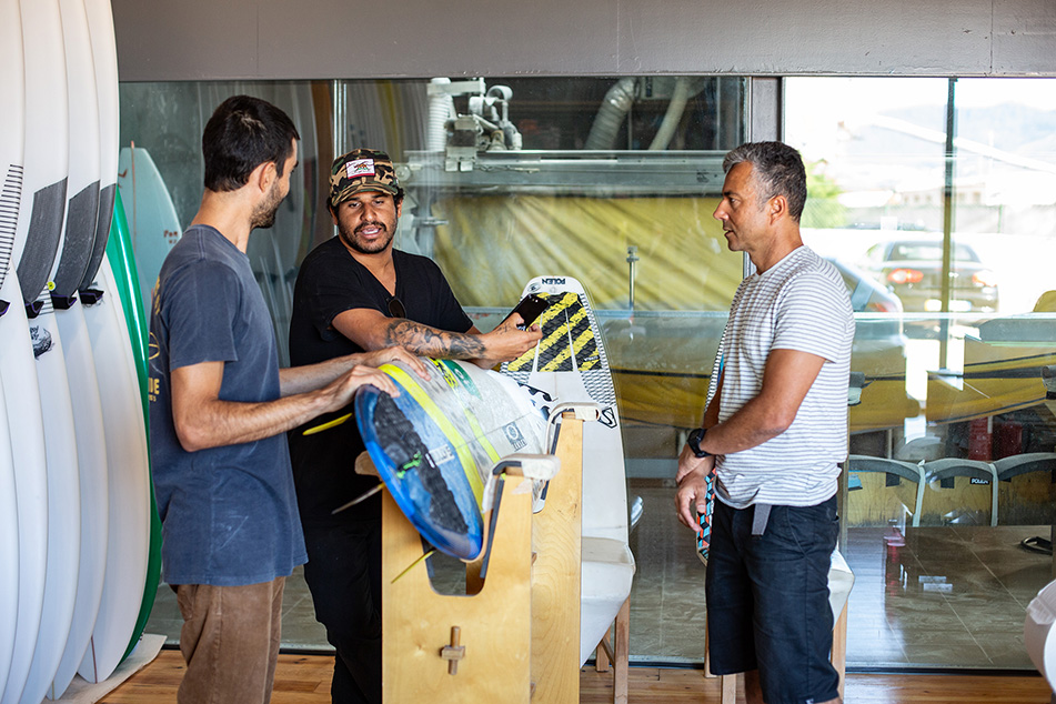 Polen Surfboards has been fortunate to work closely with these legendary shapers, exchanging ideas that enriched our craft. That process helped make our own shapers, Paulo do Bairro and Nuno Surdo, some of the most versatile in the industry, capable of blending international insights with local conditions. All this knowledge is applied directly to our boards, creating models designed specifically for the European waves and market, combining performance, reliability, and the unique spirit of our coastline.