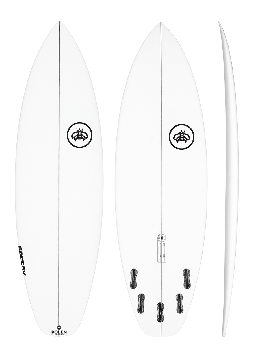 Ideal for surfers in progression, the Greedy was designed to make everything simple and fun in summer type waves. We kept a wider outline all the way from the nose to the tail to provide easier paddling and control. The single concave to V off the tail combined with mid/full rails you help you go fast down the line, and still make some nice smooth turns allong the way. The wider tail keeps the board floating even in weaker sections or mushy waves. Surfing with more area and volume will get you scoring more waves than others around you for sure. Ride it has a tri-quad set up to get different feelings in the same board.